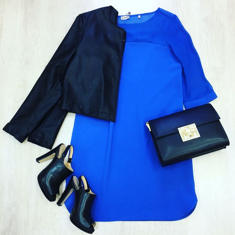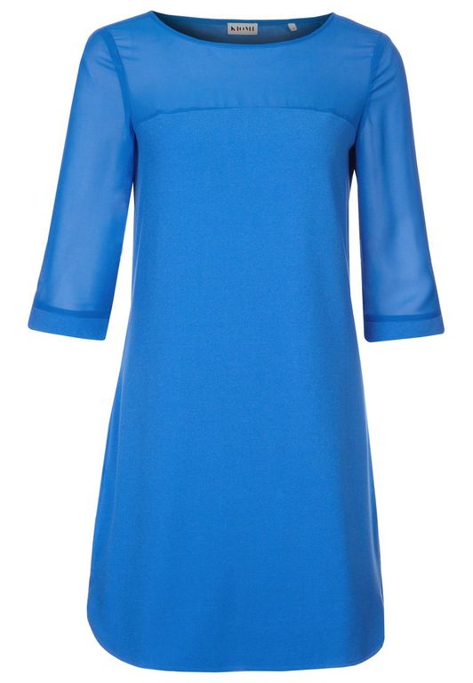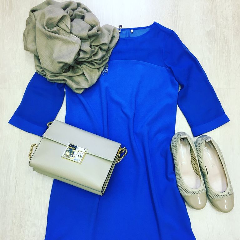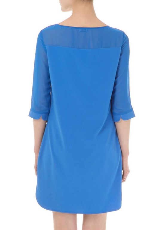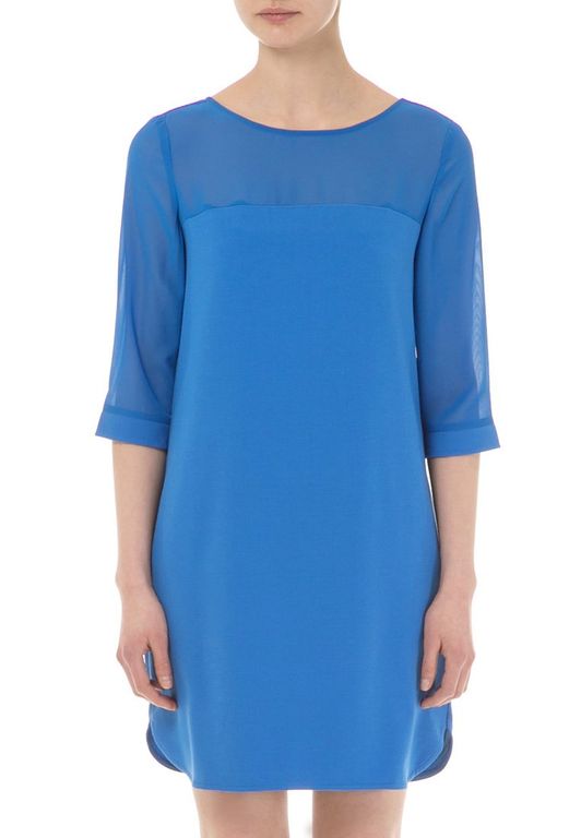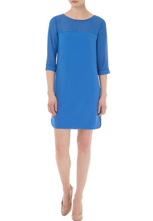 Платье прямого кроя, на подкладке, с декоративной вставкой в зоне декольте, рукава 3/4