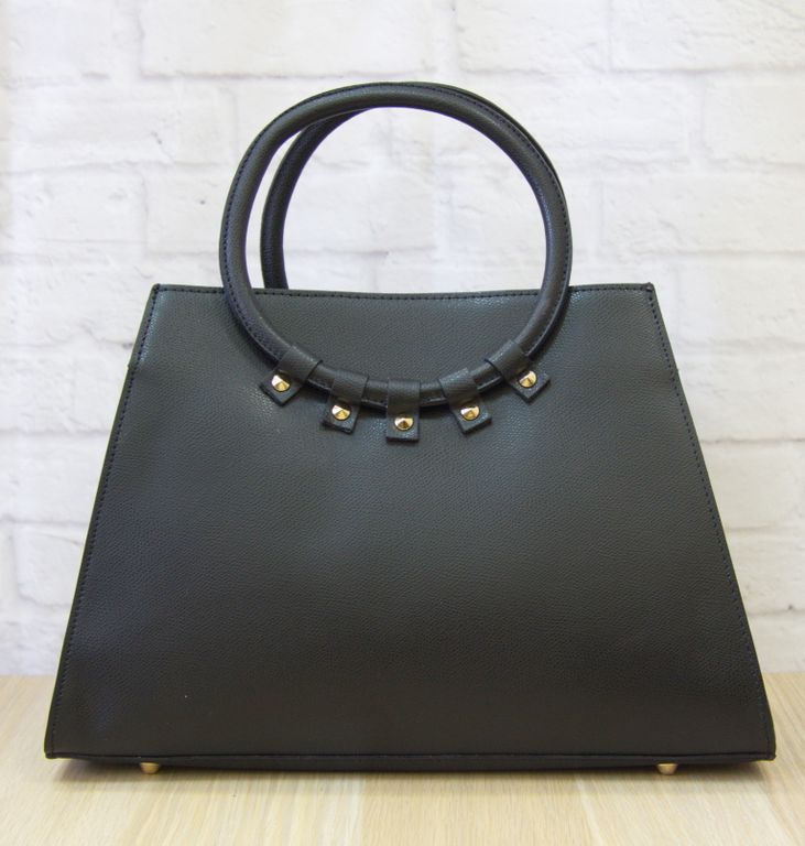 Сумка-трапеция выполнена из натуральной кожи. Особенности: одно отделение на молнии, внутри - два отделения, один карман на молнии и два без застежки, съемный плечевой ремень.
