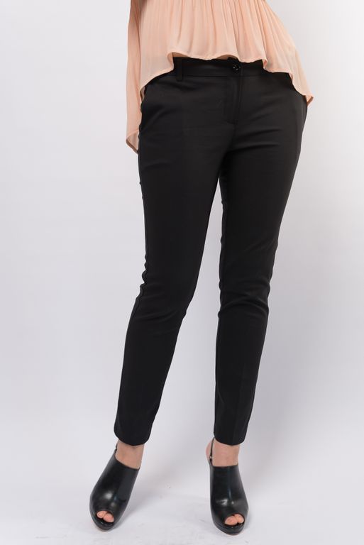 Брюки Miss Miss by Valentina выполнены из плотного гладкого текстиля. Детали: зауженный крой; застежка на молнию и пуговицу; два боковых и два задних фальш-кармана; шлевки для ремня.
