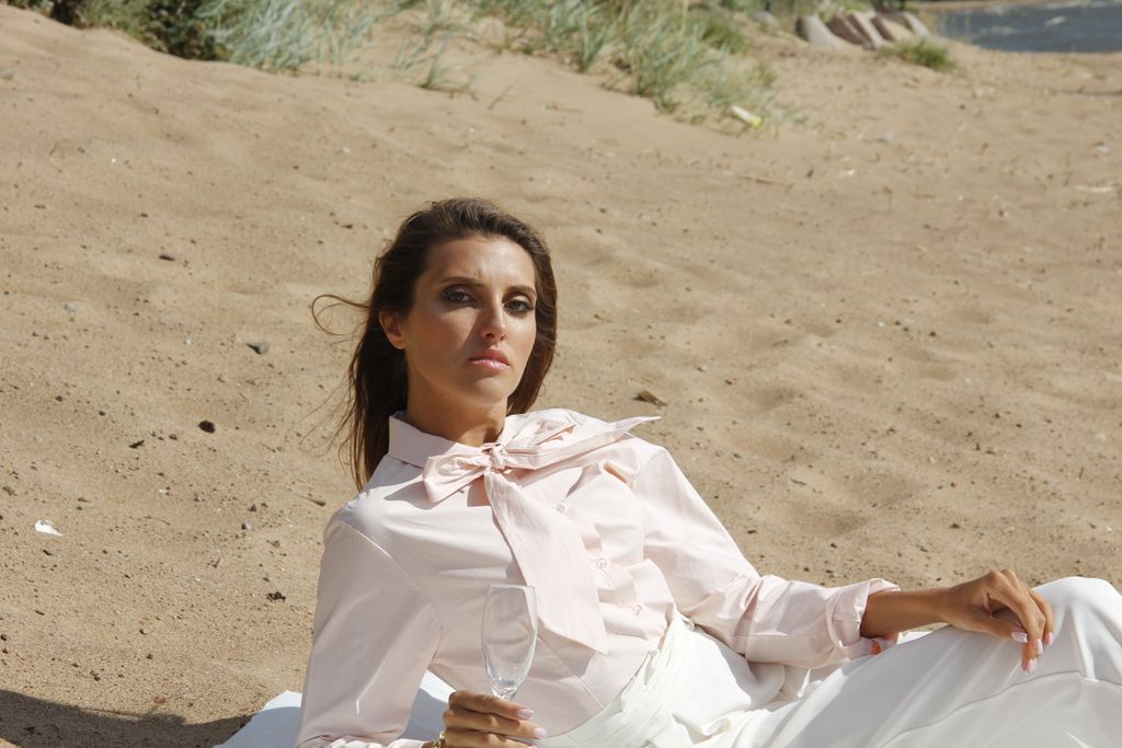 Рубашка Miss Miss by Valentina выполнена из тонкого хлопкового текстиля. Модель прямого кроя. Детали: застежка на пуговицах, отложной воротник, завязывающийся бант.