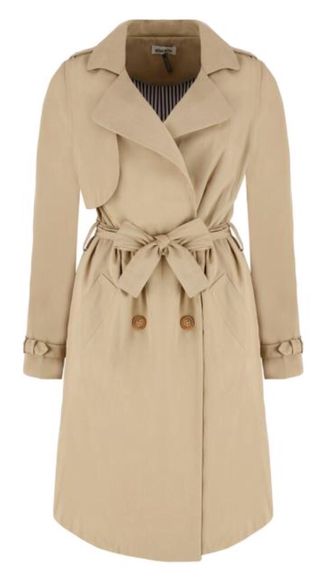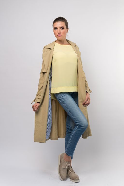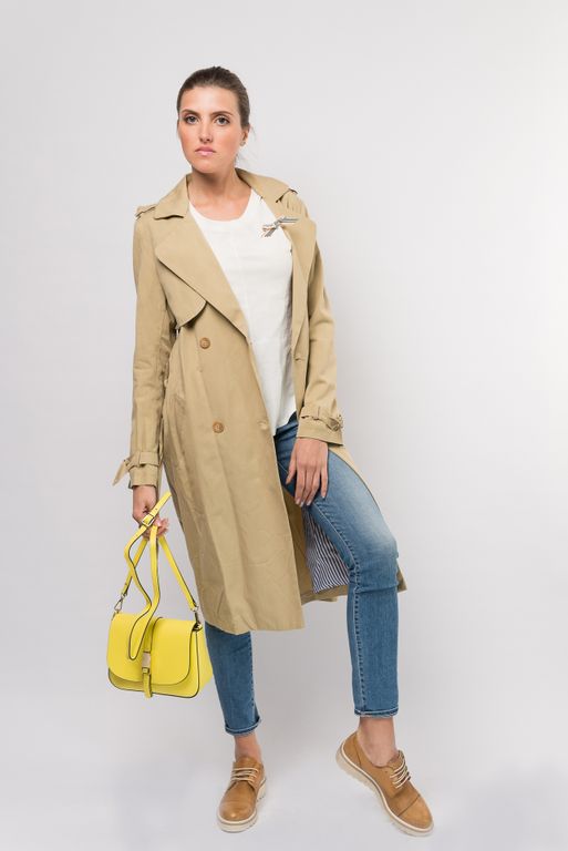 - особенности модели: два кармана, тренчкот застегивается на пуговицы, фиксируется поясом на талии